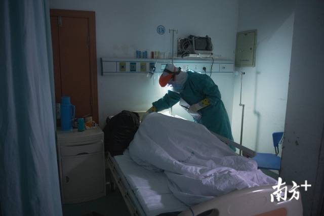 3月1日凌晨4点32分,汉口医院重症病区内,一位护士正在为一位新冠肺炎患者盖好被子。