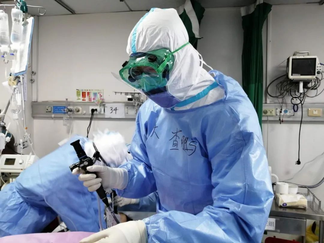 查鹏医生在湖北省鄂州市中心医院抗疫一线。