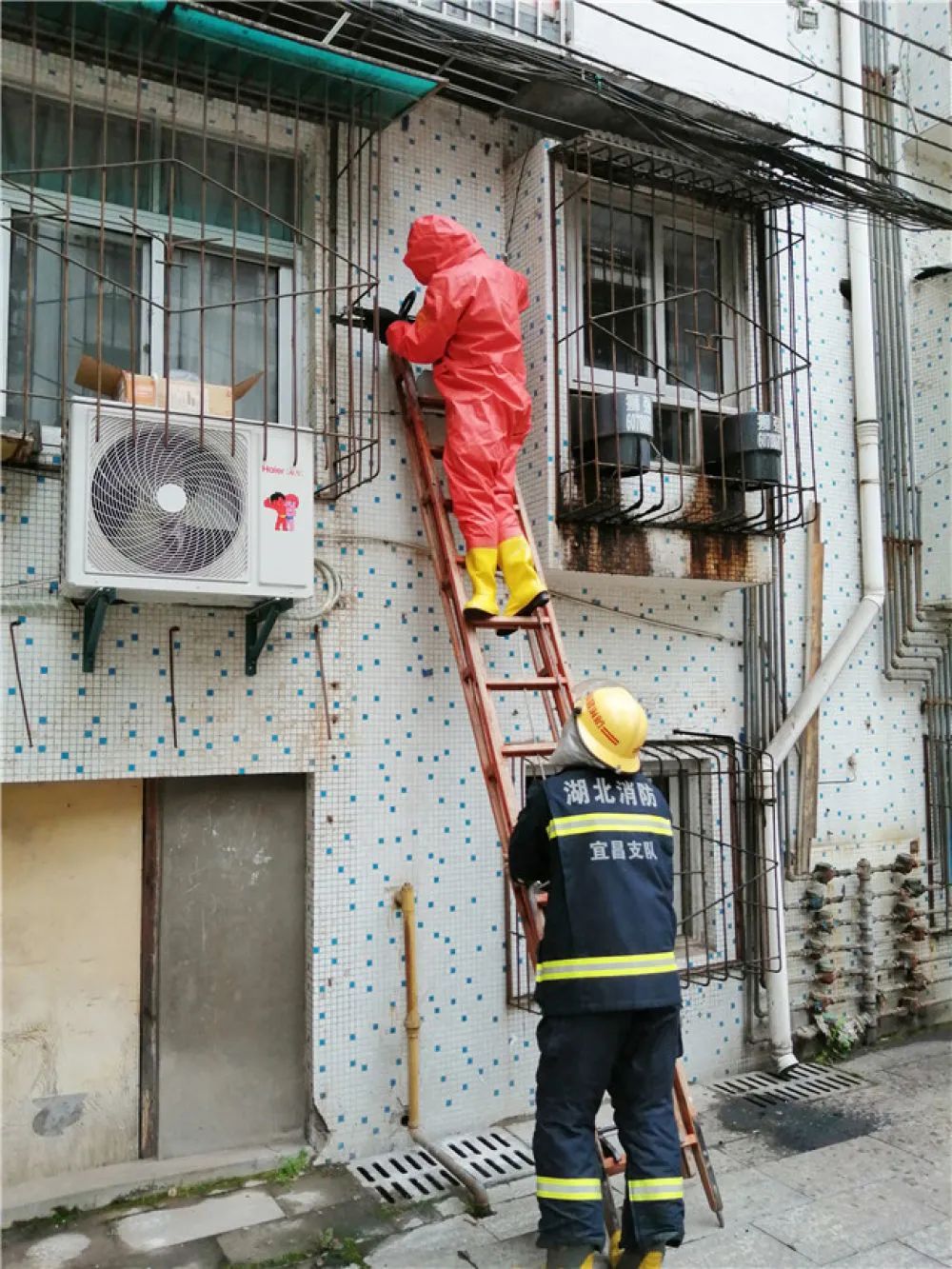在孝感,1名有精神病史且疑似新冠肺炎患者将自己反锁在家中,手持铁锤声称谁进来就砸谁。“就我们上,免得更多人与病毒接触。”孝南区交通路消防救援站站长陈言龙带领队员破拆而入,协助民警将病人送医。