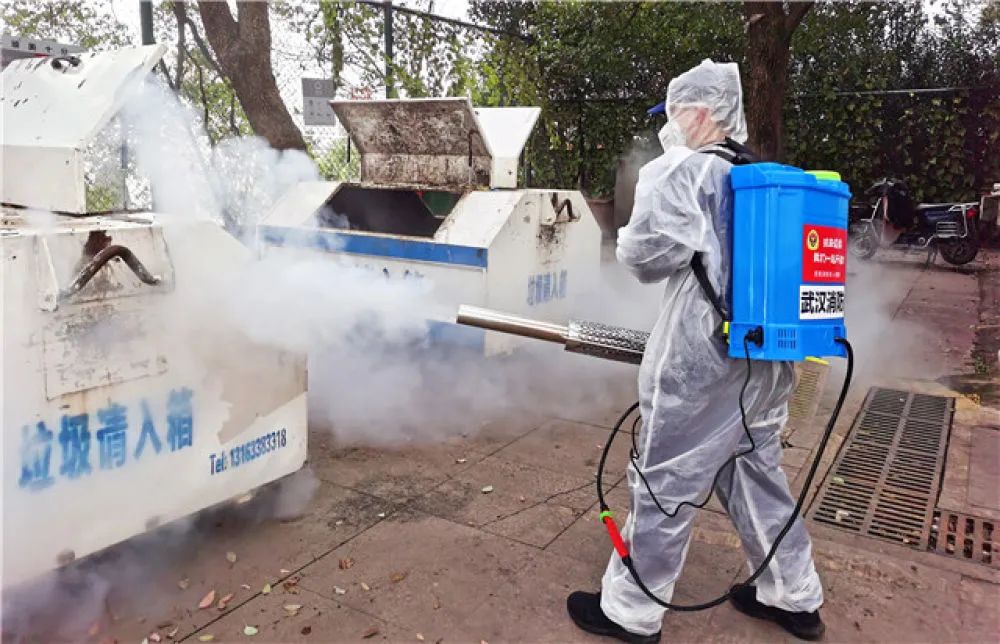 2月22日一早,鄂州市华容区消防救援大队大队长毛飞率领10名突击队员,到辖区内的小区开展消毒工作。消毒装备重达60多斤,将整个小区全面消毒,至少需要来回装3次消毒水。繁重且枯燥的工作,队员们一丝不苟。