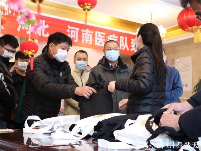 全国道德模范孙东林、刘培、熊定萍先后到到驻陂援鄂医疗队员住宿酒店,给他们送去了300多份体现黄陂木兰文化、盘龙文化、二程文化、黎黄陂首义文化四大文化为核心的“木兰有礼”大礼包:木兰绢布扇、木兰自拍杆、木兰防晒衣、二程马克杯等礼物。