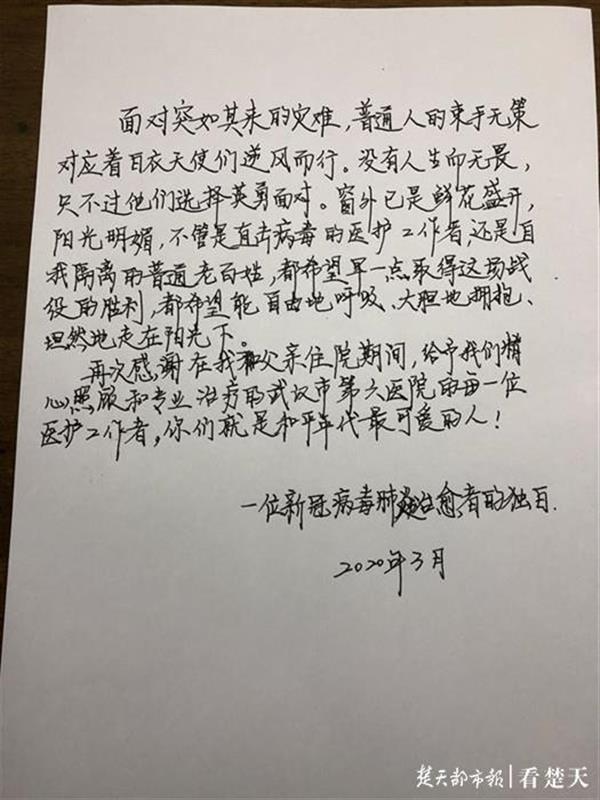 刘婷父亲于2月13日治愈出院,刘婷于2月17日治愈出院。目前,父女俩均各自在家隔离观察,“我们都接到了六医院的回访电话,还告诉我们做康复训练、静养、营养支持。”刘婷由衷说。
