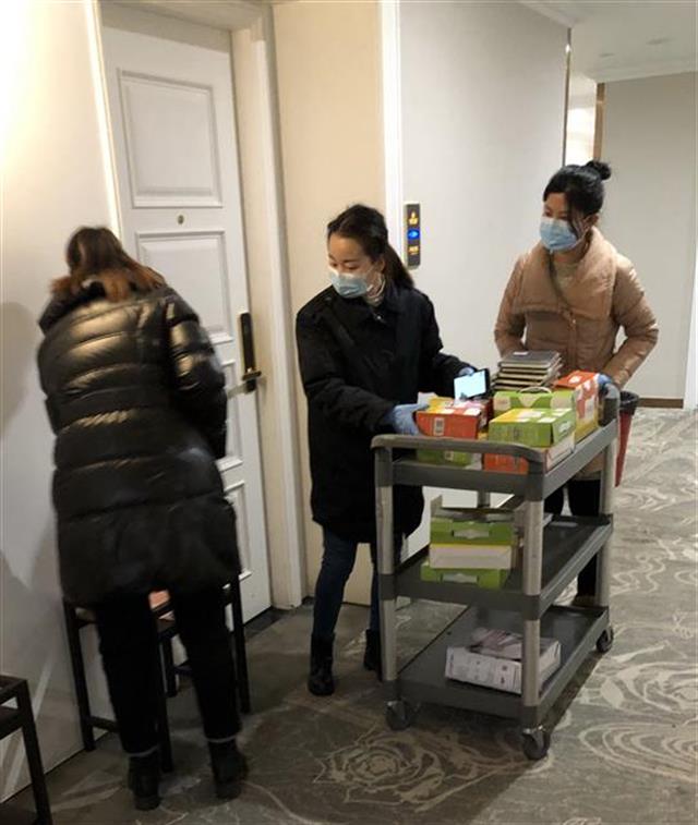 为了给医疗队营造安全舒适的居住环境,这5名志愿者分为消毒、客房、餐饮服务三个专班,每天为进出人员登记、消毒、测量体温、配备必要的生活物品。24小时志愿服务很辛苦,大家却都无怨无悔。