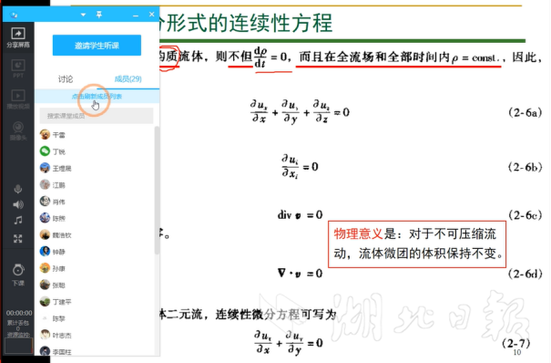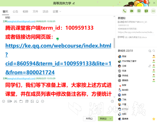 承担《高等流体力学》课程教学的副教授、博士生导王辉是该院第一位主动开设研究生线上教学的教师。面临首次开展线上教学这一新的教学方式带来的挑战,他克服困难,假期静心投入开课准备工作,课中细心开展线上教学,课后耐心解答学生疑惑,以“三心”保障研究生线上教学“三课”质量。