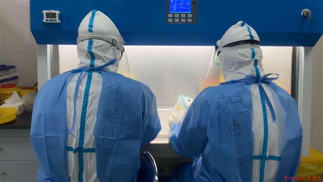 “当天的标本,不管晚上到多晚,我们都尽全力全部完成,不让标本放置时间过长,以免影响检测结果,对病人的每一份标本负责,慎重审核每一份报告,这是我们的职责。”战疫期间,这支特殊的战队里,大家守望相助、团结协作,“不辱使命!”是他们简单而郑重的承诺。