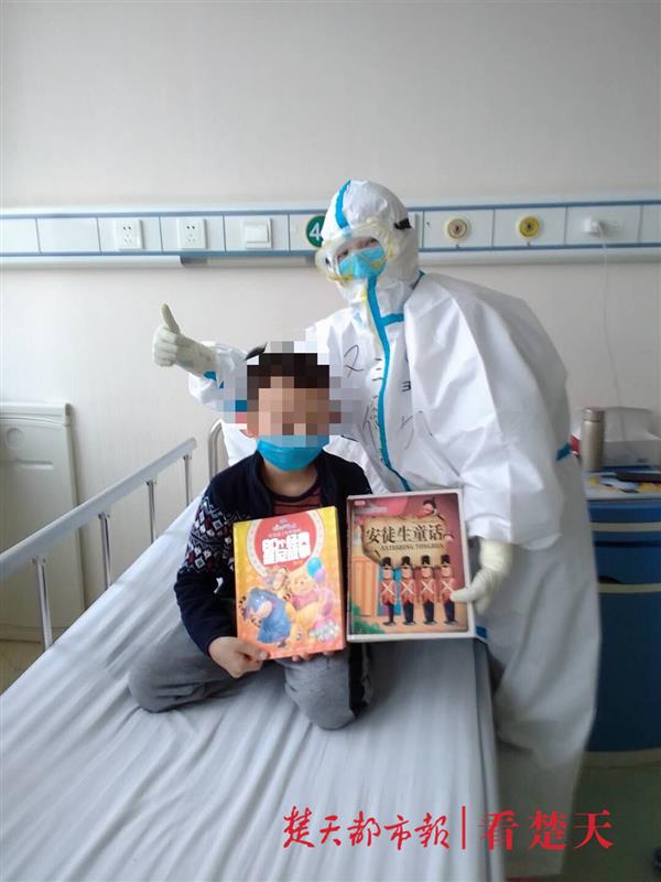 后来,护士谢华英提议,带童话书来,学习娱乐兼顾。她的提议得到一致认可。谢华英请她12岁的女儿按照7岁孩子的喜好,从自己的书柜里给这个没见过面的病号弟弟挑选书籍。第二天,谢华英把一本《80个经典维尼故事》和一本《安徒生童话》带到病房,送给童童。