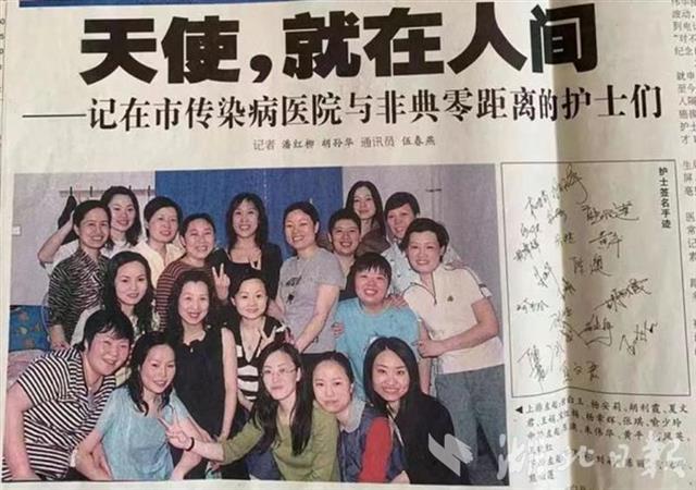 2003年5月,“非典”疫情大为好转,包括她们4位在内,武汉市传染病医院19位勇斗病魔的护士摘下口罩,留下一张合影。