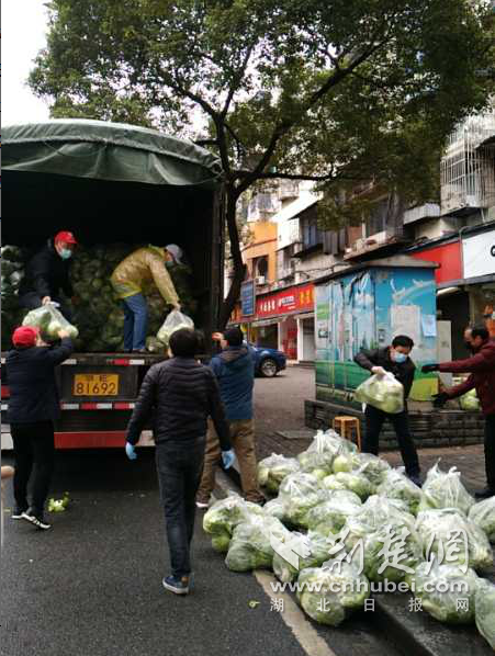 毛良民组织志愿者和小区居民搬运打包“爱心蔬菜”。通讯员供图