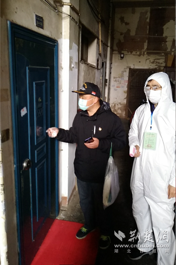 毛良民带领小区战“疫”工作队队员挨家挨户上门测量体温。通讯员供图
