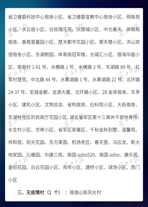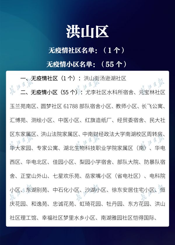 七、洪山区无疫情社区名单:(1个),无疫情小区名单:(55个)