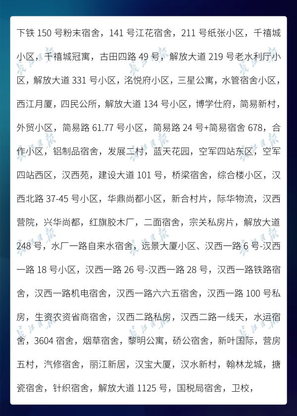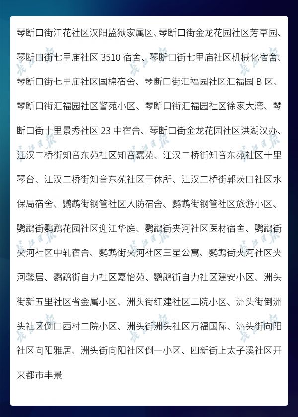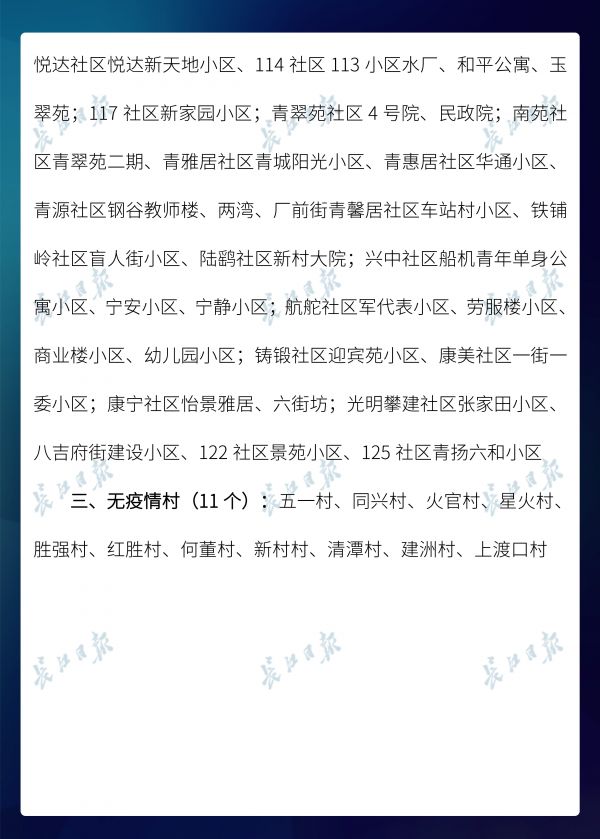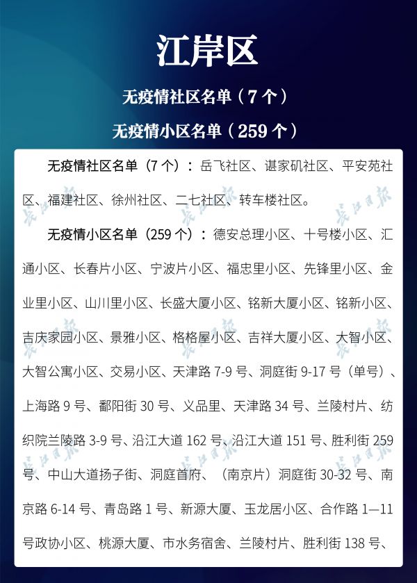 一、江岸区无疫情社区名单(7个)、无疫情小区名单(259个)