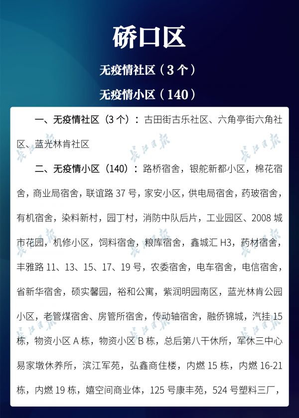三、硚口区无疫情社区(3个),无疫情小区(140)