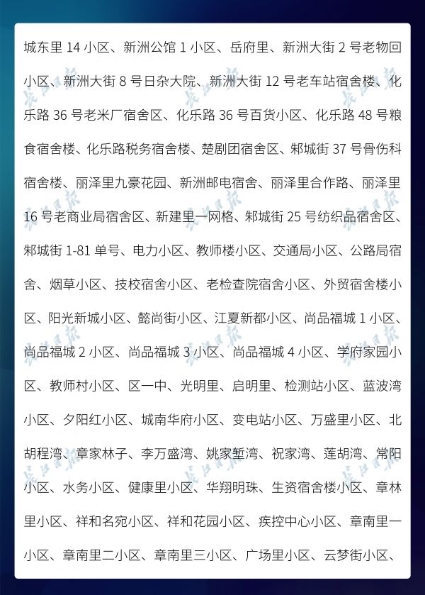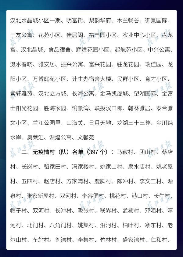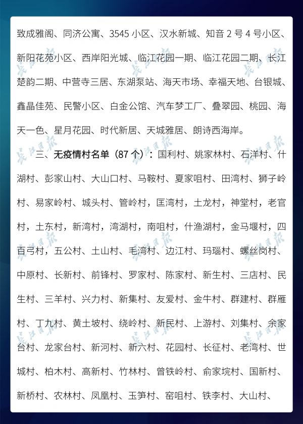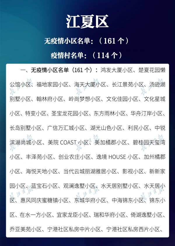 九、江夏区无疫情小区名单:(161个),无疫情村名单:(114个)