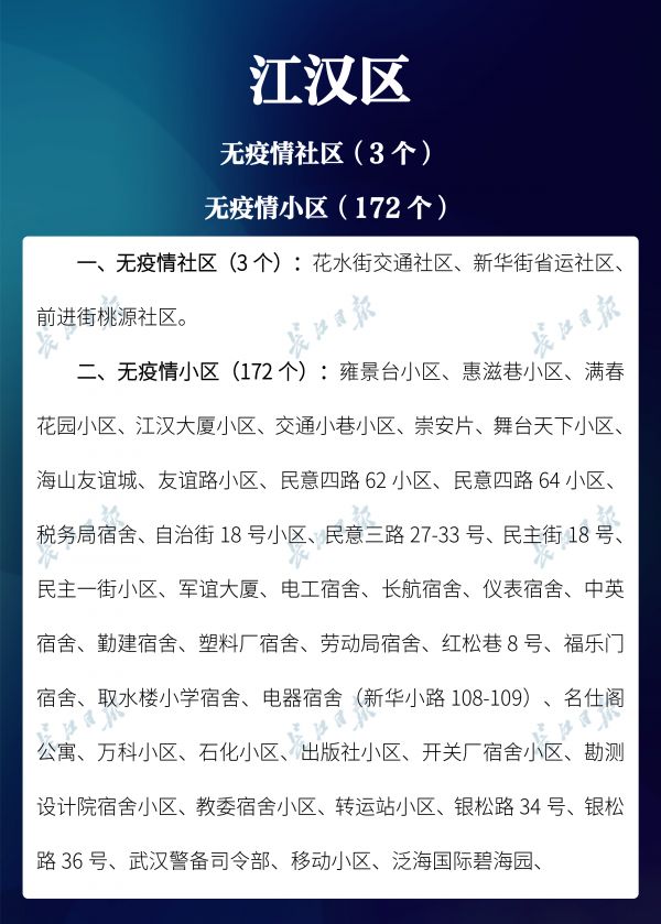 二、江汉区无疫情社区(3个)、无疫情小区(172个)