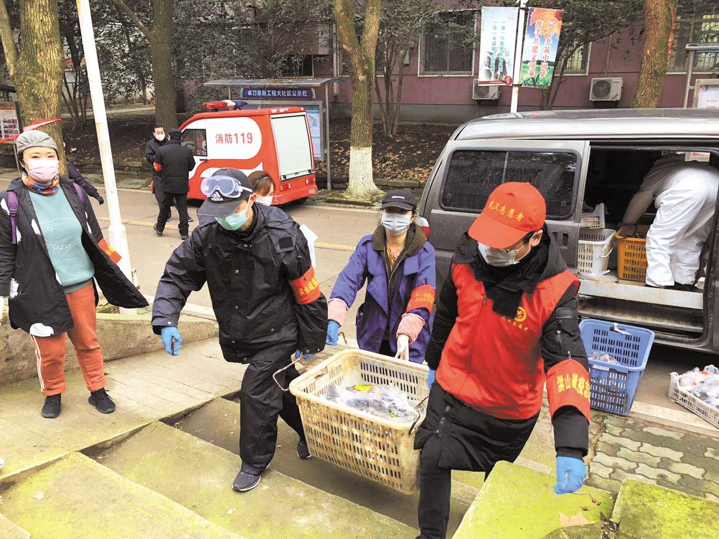 在工程大社区,高龄老人是社区重点关注和服务对象。55名武汉工程大学教职工党员干部与社区党员组成志愿者爱心小分队,在社区工作人员带领下,制定“高龄老人需求清单”,对于他们的安全防护、蔬菜及药品采买给予专门保障,并由志愿者送到家门口。