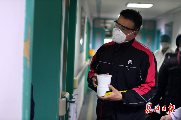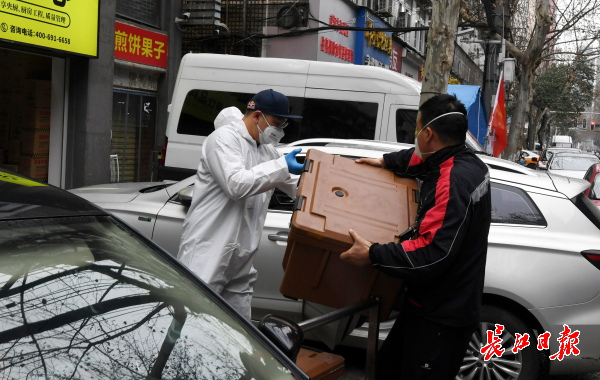 长江日报-长江网3月7日讯3月6日,武汉快递员汪勇来到汉口北湖附近的吴王春秋餐饮中心,将该店无偿提供的100碗热气腾腾的爱心鸡汤搬运上车,前往湖北中医院老年病科,为在这里治病的老人们跑腿送鸡汤。(记者李子云 摄影报道)