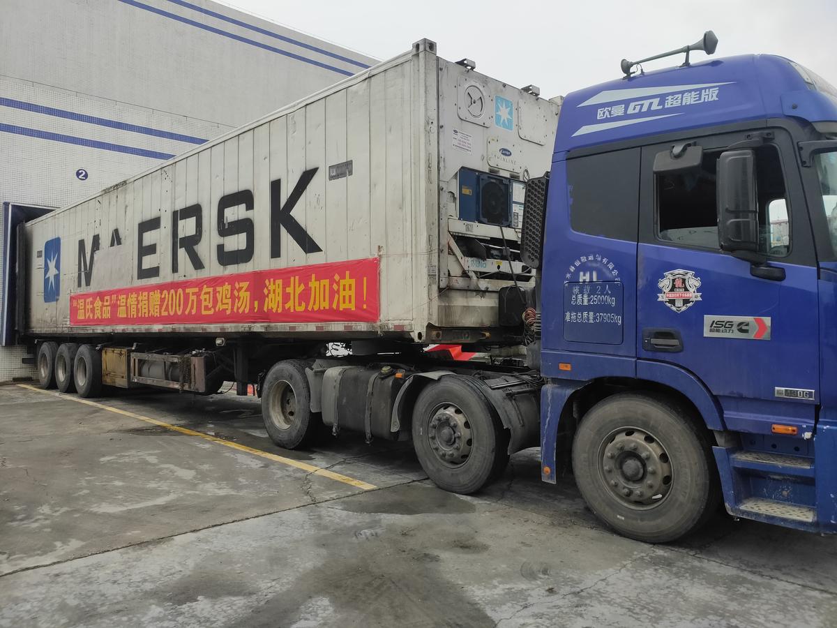 为让大家早日喝到鸡汤,该集团安排温氏佳味公司新城熟食厂排班生产。3月5日下午,首辆满载温氏爱心鸡汤的大型冷链车从位于广东省新兴县的温氏佳味公司出发,经过近20个小时的驰骋,顺利抵达武昌。剩下的鸡汤,将分30余车次分别送抵,一个月内送完。