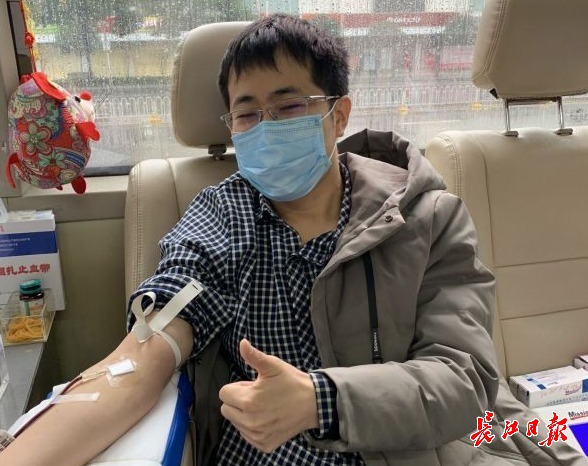 35岁的李兆锋是河北石家庄第一医院的检验科医生,曾在武汉上学多年。1月27日,他报名参加了河北第一批支援武汉医疗队,对口支援武汉市第七医院。来汉后,李兆锋每天都会经过中南商业大楼献血点,但受疫情影响,献血者寥寥无几。“这个时候,我能做一点是一点!”2月15日,李兆锋来到献血车献血400毫升。