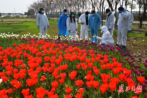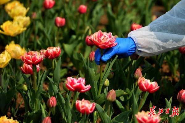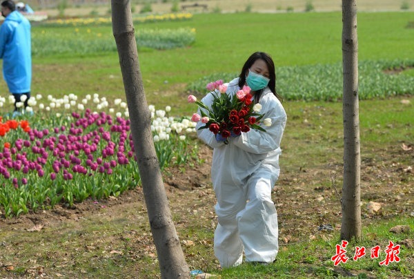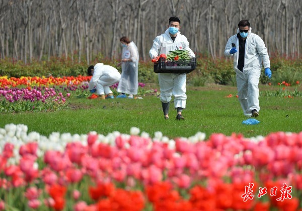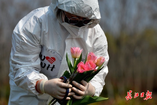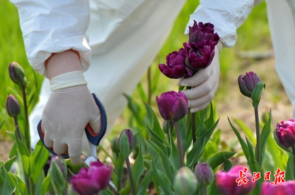 长江网3月7日讯 2020年3月7日,几位为医院服务的志愿者来到东西湖郁金香主题公园,采摘新鲜的郁金香,准备送到一家花店进行打包。此前,为向坚守一线的广大女性医护人员致敬,郁金香主题公园决定敞开大门,在节日前夕,为广大女性医护人员及志愿者无偿提供鲜花,并为她们送去节日的慰问和祝福。这批郁金香打包完成后,将在“三八”国际妇女节当天送到相关医院,给战“疫”一线的巾帼英雄们一个惊喜。 (记者喻志勇 通讯员操婷 摄影报道)