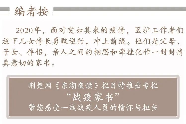 今晚荆楚网《东湖夜读•战疫家书》栏目跟您分享这封《写给亲爱的小胖丁的一封信》。