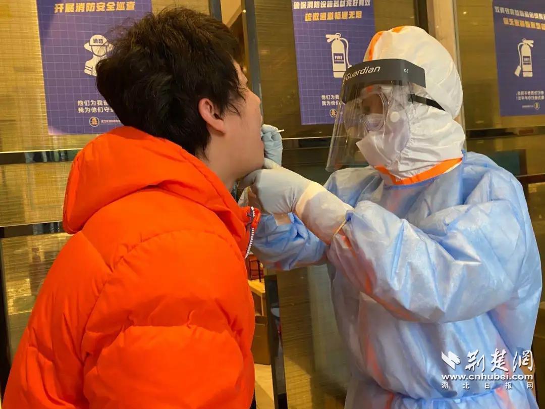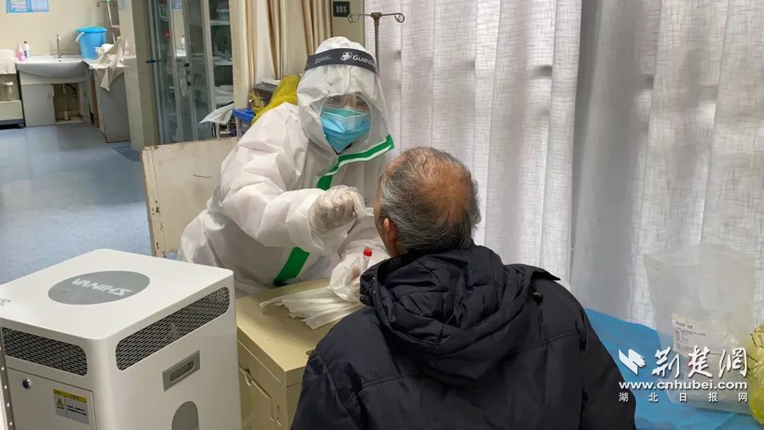 荆楚网客户端—荆楚网消息(通讯员 孙四海) “啊——张开口,对,别紧张。”3月7日,湖北省荣军医院核酸采样组成员邢利嫦正在发热门诊为患者进行咽拭子标本采样,这是离病毒最近的操作之一。