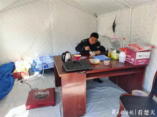 自2月25日起,在省公安厅、十堰市公安部署强化监所疫情防控工作紧急视频会后,周武生就24小时驻守在看守所门外临时帐篷内,成为高墙监所大门外一名专职“硬核守门局长”。