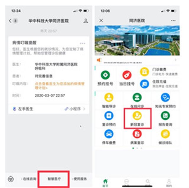患者只需出院时扫描“新冠肺炎智能随访”二维码,或者关注华中科技大学同济医院微信公众号(whtongji1900),点击菜单栏【智慧医疗】,进入智慧医院,点击“新冠复诊”,即可,其他医院出院患者也可加入此智能随访。同济医院会通过微信端对患者进行连续随访、病情监测。患者也可以通过手机随时查看自己的随访管理计划,了解康复进程。