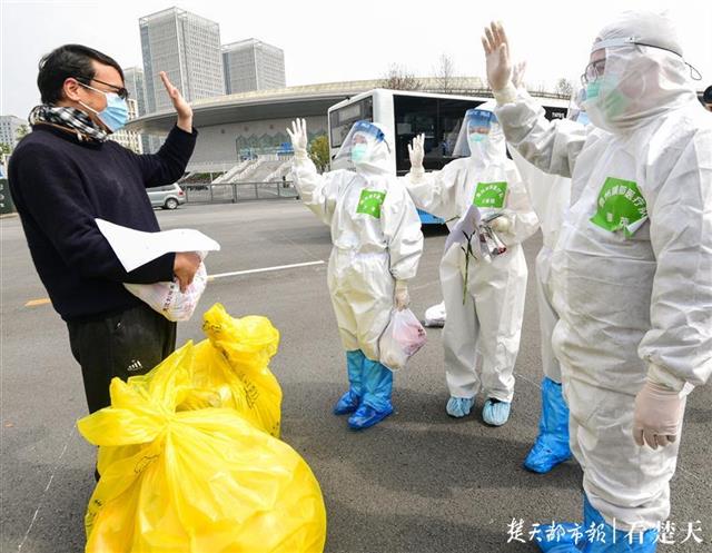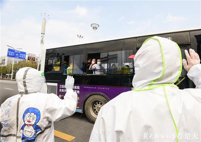 上午11时40分许,当贵州援鄂医疗队的最后一名患者刘女士走出来时,她用有些嘶哑的声音对贵州援鄂医疗队的医护人员说:“谢谢你们,你们辛苦了!”她一连给医护人员鞠了好几个躬,并拱手向他们致谢,感谢的话说了10来分钟。看着刘女士走上摆渡公交车,叶青无法抑制自己的眼泪:“太难了,真是不容易!他们都很强大,非常配合我们。我们也不容易,没日没夜地守着他们,担心他们、照顾他们。现在看着他们健康走出去,我感到太幸福了!”