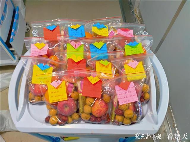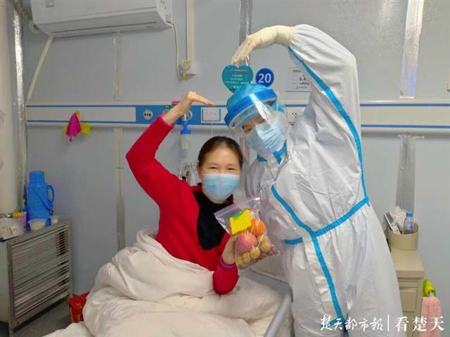 看到礼包上的的祝福和手叠的爱心,不少女患者开心地和医护人员比心。