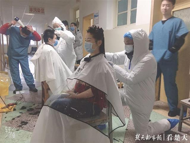 楚天都市报3月8日讯(记者张皓 通讯员王东升)今日下午,武汉市新洲区邾城美发协会的几位理发师,第四次来到该区中医院,为医护人员理发。