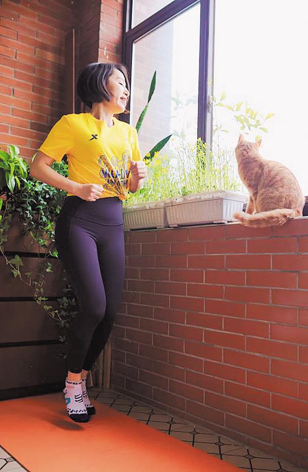 3月6日,武汉市洪山区大华社区的晏晋芳在跑步。原报名参加4月汉马比赛的她,在家每天坚持跑步1小时。 (受访者供图)