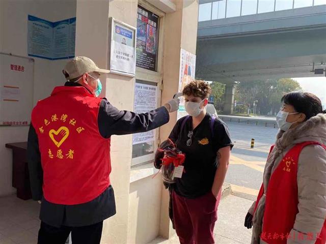 金色港湾社区面积大、楼栋公寓多,人口密集复杂,有常住人口、有租户、有市内的、有省外的,还有100多名外籍人员,疫情期间在社区居住上万人;社区大、门岗多,给检测体温、网格排查和居民劝阻等带工作带来诸多困难。老杨每天6:30从位于汉口的家中出发,7:30到岗,简单早餐后,便开始一栋一栋楼、一个一个门岗的巡查。遇到工作人员解决不了的问题,立即上前“灭火”,遇到有困难的工作人员,他还临时“替岗”。