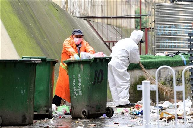 环卫来清垃圾,小区抗疫小组成员积极参与清运
