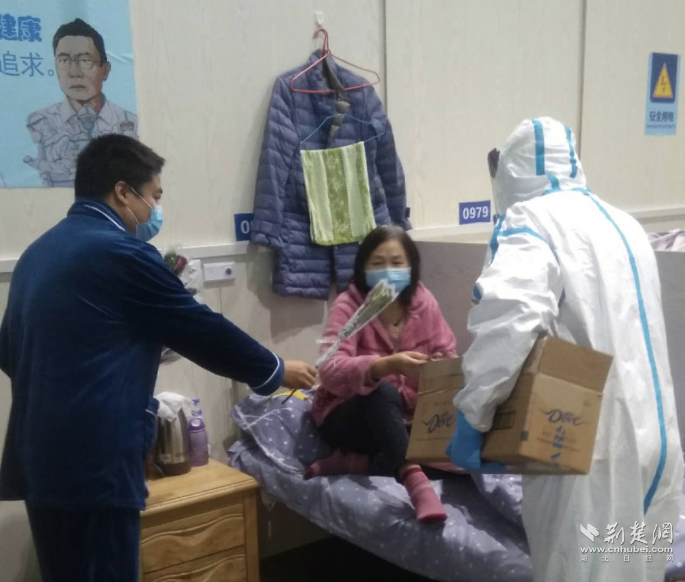 为了加快康复进程,驿站广播站分时段播放与湖北省应急广播FM927联合制作的《驿站晨曲—民歌正飞扬》《健康快车道》《音乐的力量》等广播栏目,还开设了气功八段锦视频公益课堂,志愿者带着大家伸展身体、适度活动,让身心得到愉悦。恰逢“三八”国际劳动妇女节,志愿者们向正在驿站内辛勤工作的医护人员,特别是接受康复观察的女同胞们致以诚挚的慰问,并向她们送上鲜花和巧克力。