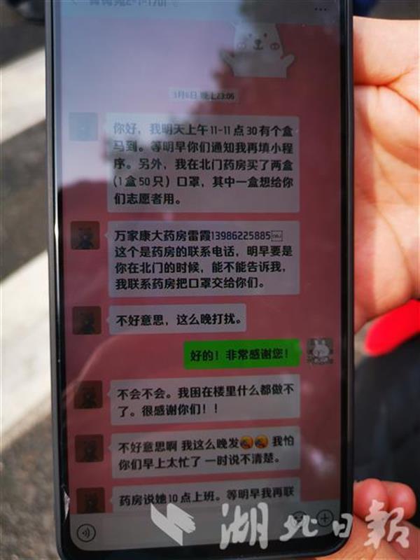 前不久,黄逸涵接到小区一位居民的信息,对方说自己在小区门口订购了两盒口罩,要送一盒给小黄和她的志愿者伙伴,“说实话,我并没有做太多的事,这些叔叔阿姨、爷爷奶奶,让我很感动。”黄逸涵说。