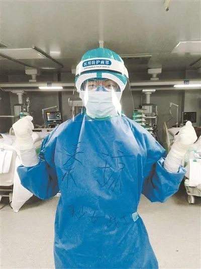 每当队友们担心李毅这身板能否扛住时,她总会风趣地说:“瘦归瘦,但我全身都是筋骨肉!”这还不算,她还在自己防护服上写下这样几个大字——为人民服务(的)女超人。