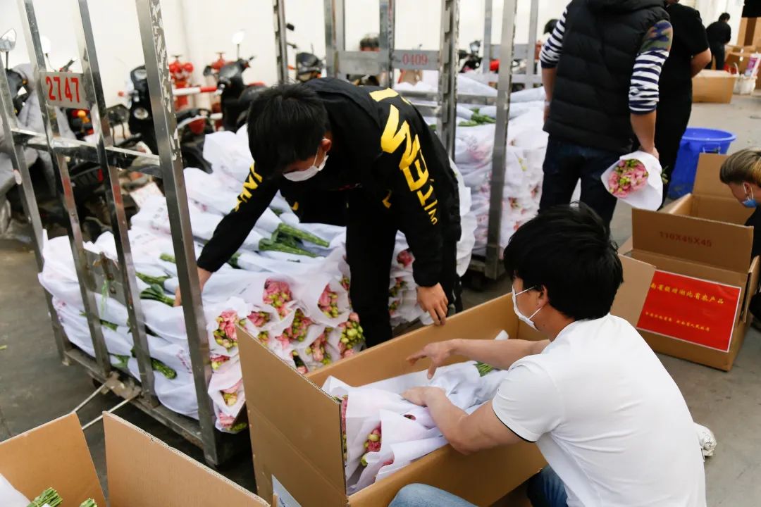 2月19日至3月8日,昆明东站通过全程冷链已累计装运鲜花6车52吨。