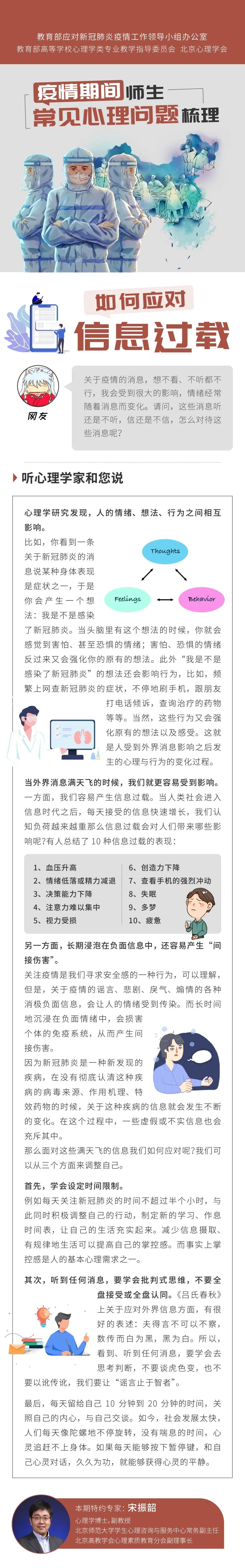 今天,推出《用“心”战“疫”》第㉘期,随教育小微一起来听北京师范大学学生心理咨询与服务中心常务副主任宋振韶、外交学院心理咨询中心主任宗敏详解,疫情期间师生常见心理问题如何调整↓↓↓