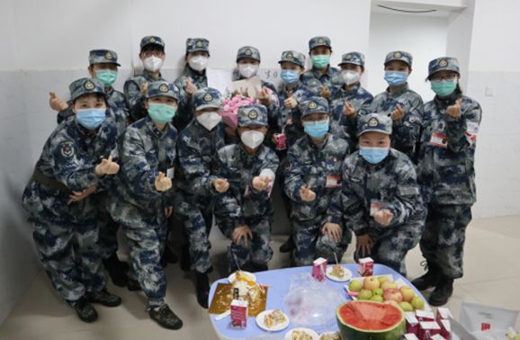 就在进入房间的那一瞬间,她听到了熟悉的歌声,战友们手捧鲜花向她走来,她才记起今天是自己40岁的生日。看着战友,何春艳的眼眶渐渐湿润,看到战友们精心准备的生日蛋糕、水果和生日卡片,还有那碗长寿面,心里满是感动。