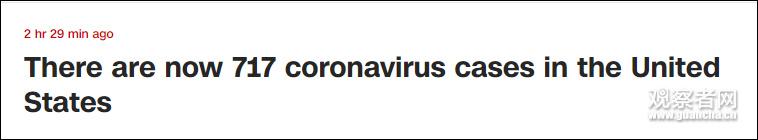 观察者网梳理美媒和机构数据后发现,全美目前累计确诊数约在717人至752人之间。