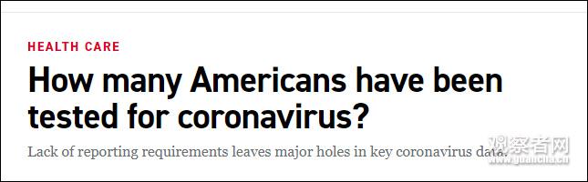 美国官方不仅延迟公布确诊人数,还隐瞒关键数据。自3月2日起,美国疾控中心以“数据不准”为理由,停止公布接受新冠病毒检测人数、检测阴性人数,随后又以“区间数据”代替具体的累计确诊人数,令人无法直观了解美国疫情。