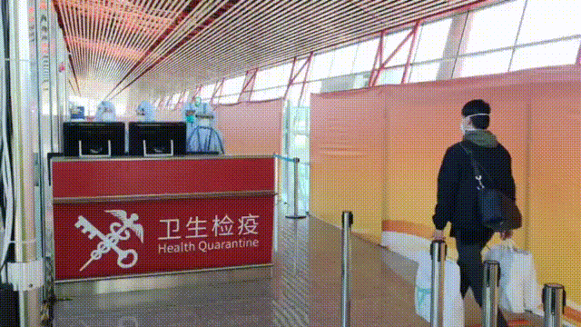旅客经入境检疫后,海关和边检部门针对来源地依据检疫、筛查标准,逐一对每一位旅客对标检查,按分类在旅客所持护照上粘贴红黄绿三种颜色标签。