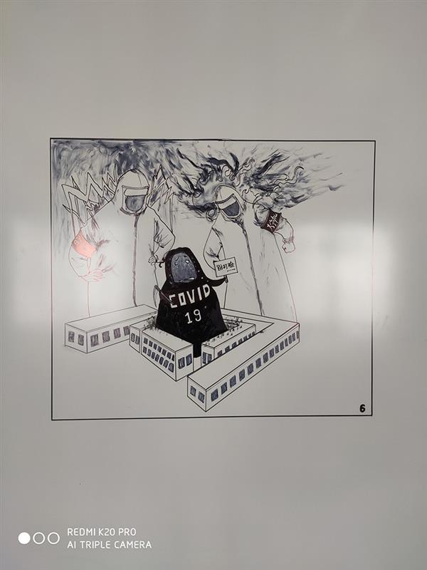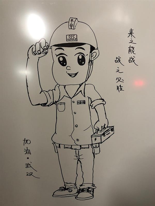 在许新焰的心中,这些画作成为了他维保工作的信心支撑,他说:“这些作品就像是我对抗疫魔的必胜决心,我觉得有他们在,我们一定能赢。”