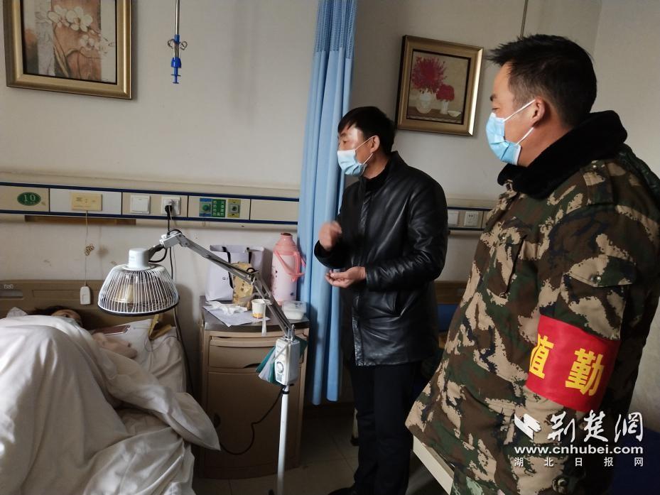 荆楚网客户端—荆楚网消息(通讯员罗晋烽、汪宇)3月10日,是军嫂陈霞独自在钟祥市中医院住院的第5天,五天来,该市退役军人事务局每日都安排专人前往陪护并提供生活照料。疫情期间,钟祥市退役军人事务局开展了“让军人安心、让军属暖心”活动,为全市3000余名现役军人及家属提供援助、排忧解难。