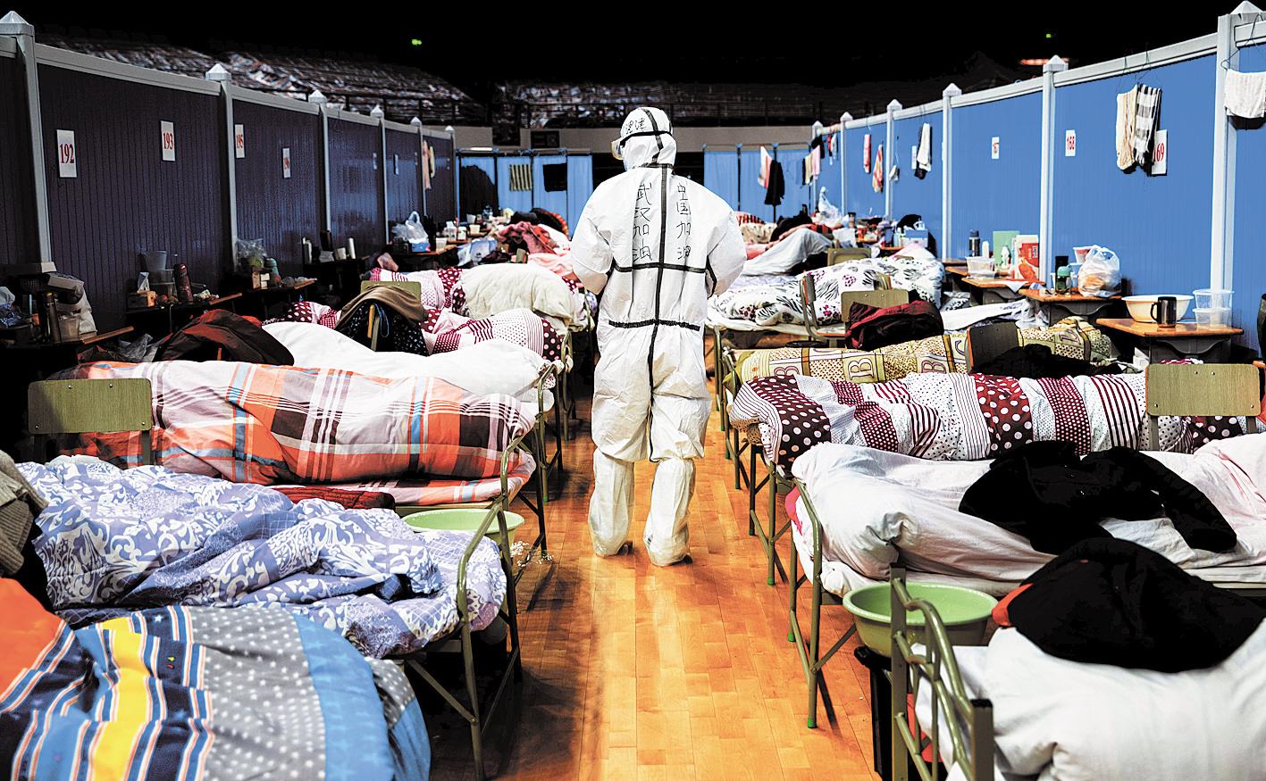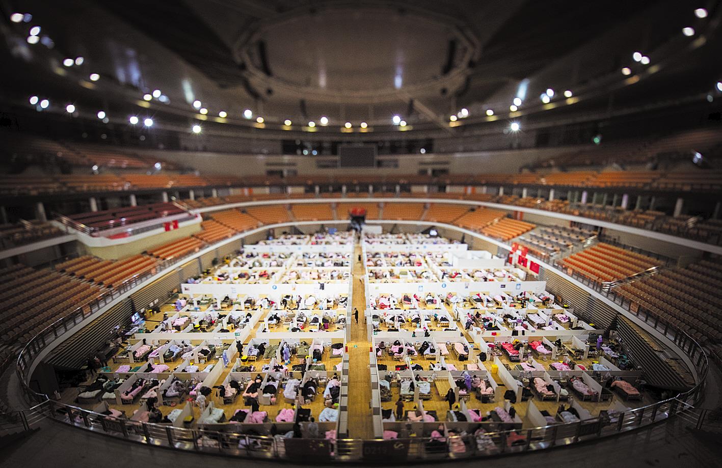 2月18日,武汉体育中心方舱医院宛如承载生命的诺亚方舟。