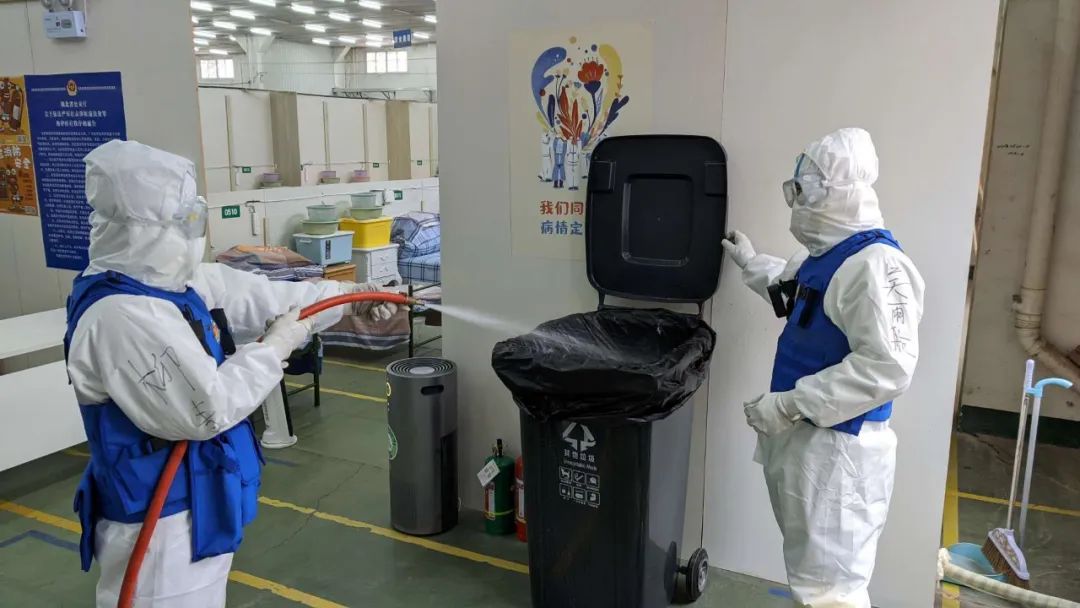 2020年3月1日,在新冠肺炎定点收治的荆州洪湖市人民医院原住院楼,因医院排污设备年久失修,医疗废水需人工转运,荆州市消防救援支队洪湖大队“119党员突击队”队员们承担起了输转医疗废水的任务,他们日均输转医疗废水30吨以上。杨秋 摄