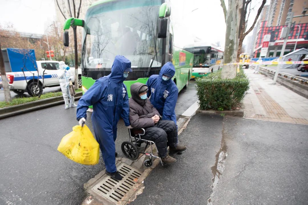 2020年2月28日,武汉市消防救援支队“119党员突击队”武昌片区的队员们,来到武汉科技大学天佑医院,对从方舱医院出院的21名康复人员进行转运接送。 何汉求 摄2020年2月29日,湖北省安陆市金秋大道消防救援站“119党员突击队”对确诊病例曾经居住过的“楚跃”“家园学府”小区进行消杀,消防员利用消防摩托车提高消杀效率。 王基达 摄2020年3月1日,武汉东湖生态旅游风景区消防救援大队“119党员突击队”队员在武汉弘毅大酒店医疗人员住宿点进行消杀作业。胡品 摄