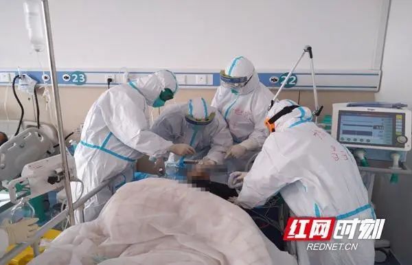 湖南医疗队医护人员在隔离病房里抢救重症患者