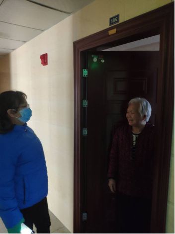 特殊群体是小区志愿者的重点关注对象。图为志愿者上门看望小区内的独居老人,关心她的生活情况和健康状况。李开奎/摄