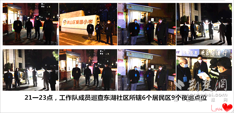 夜间巡查时间晚、路线长、气候差,一直是东湖社区疫情防控工作的薄弱环节和短板弱项。工作队主动请缨承担这一任务,在省直机关工委、社区有关负责同志的带领下,下沉当天即对各居民出入口进行踩点,制定巡查路线和巡查方案,确定每晚分组巡查社区所辖7个居民区出入口的夜间值班情况,切实织牢织密防疫安全网。